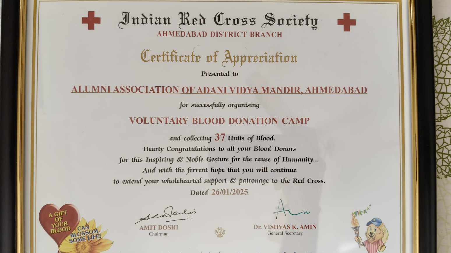 In a heartfelt initiative, alumni of Adani Vidya Mandir, Ahmedabad, organized a blood donation camp, embodying the values of service, gratitude, and empathy instilled by their alma mater. Spearheaded by a dedicated team, the drive successfully gathered life-saving donations, symbolizing hope and solidarity. More than just numbers, this initiative was a testament to the power of collective action and the enduring spirit of giving back.